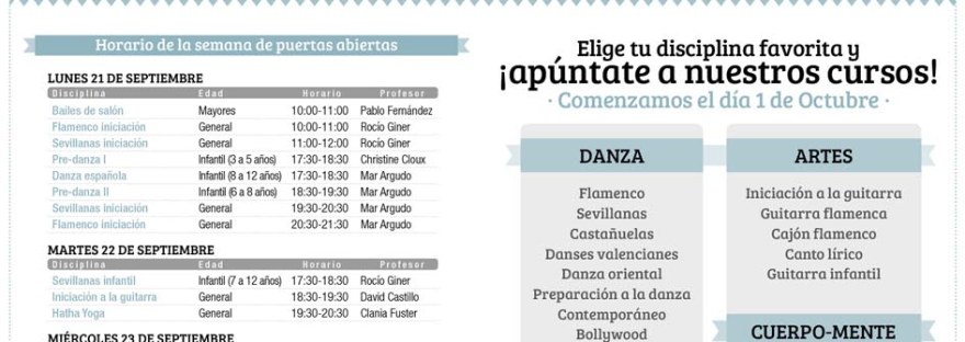 Ofreceremos a partir de septiembre una gran variedad de cursos de distintas disciplinas dancísticas como: